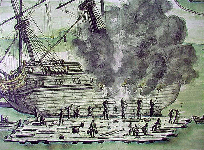 toen nog niet, die kwamen pas rond 1820. Het schip werd ontdaan van alle